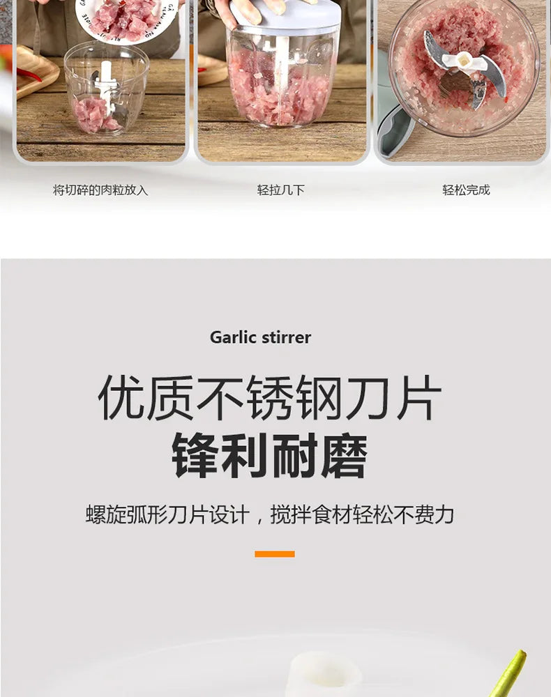 Razor-Sharp Stainless Steel Blades – Designed for fast and efficient chopping, mincing, and mixing with minimal effort.