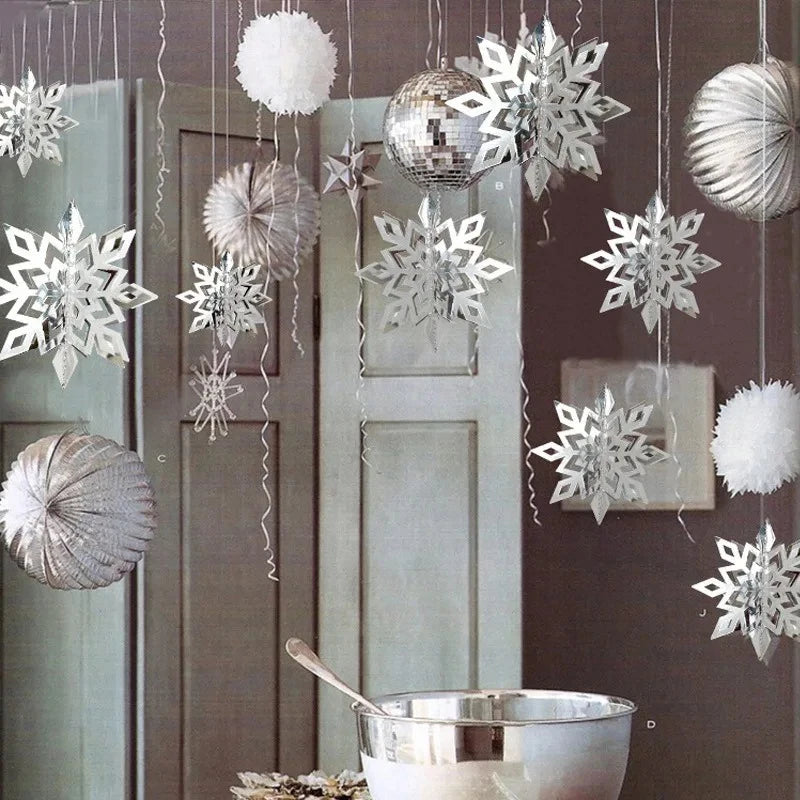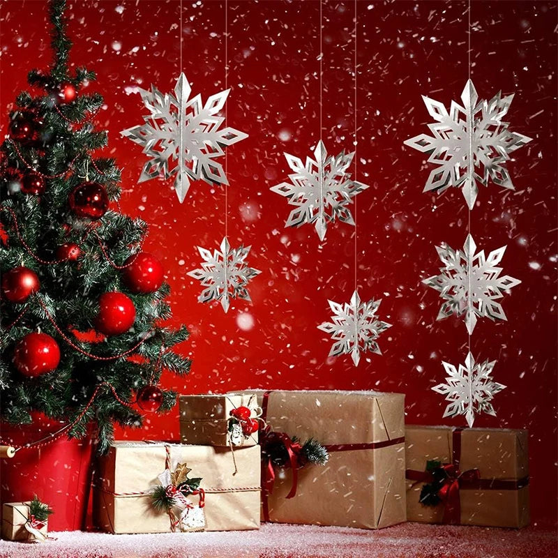 ❄️ Set of 6 Snowflake Ornaments – Includes six beautifully crafted snowflakes in three sizes (15cm, 20cm, and 25cm) to create a layered and dynamic holiday display.