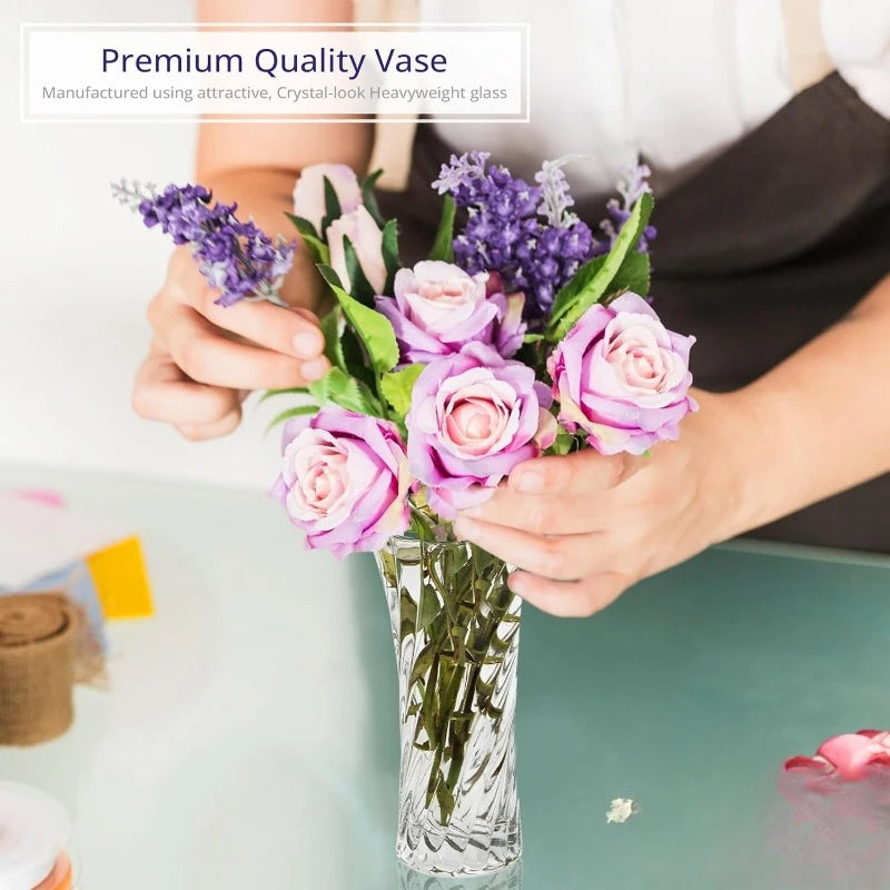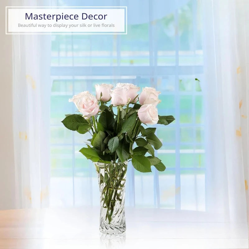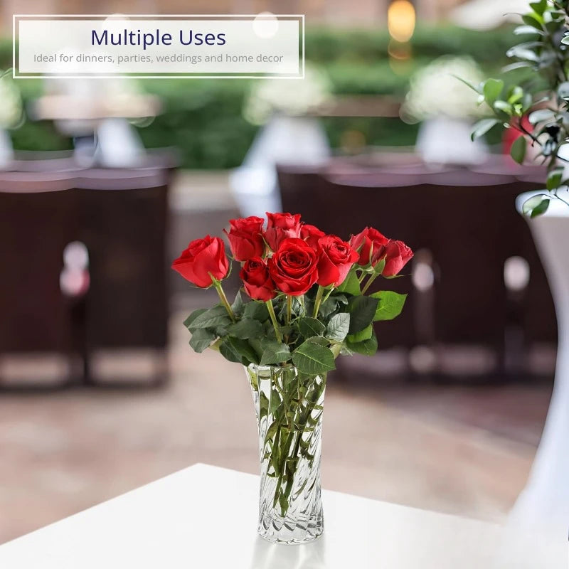 Flower Rose Vase – Crystal-Look Glass, Clear Modern Decorative Centerpiece