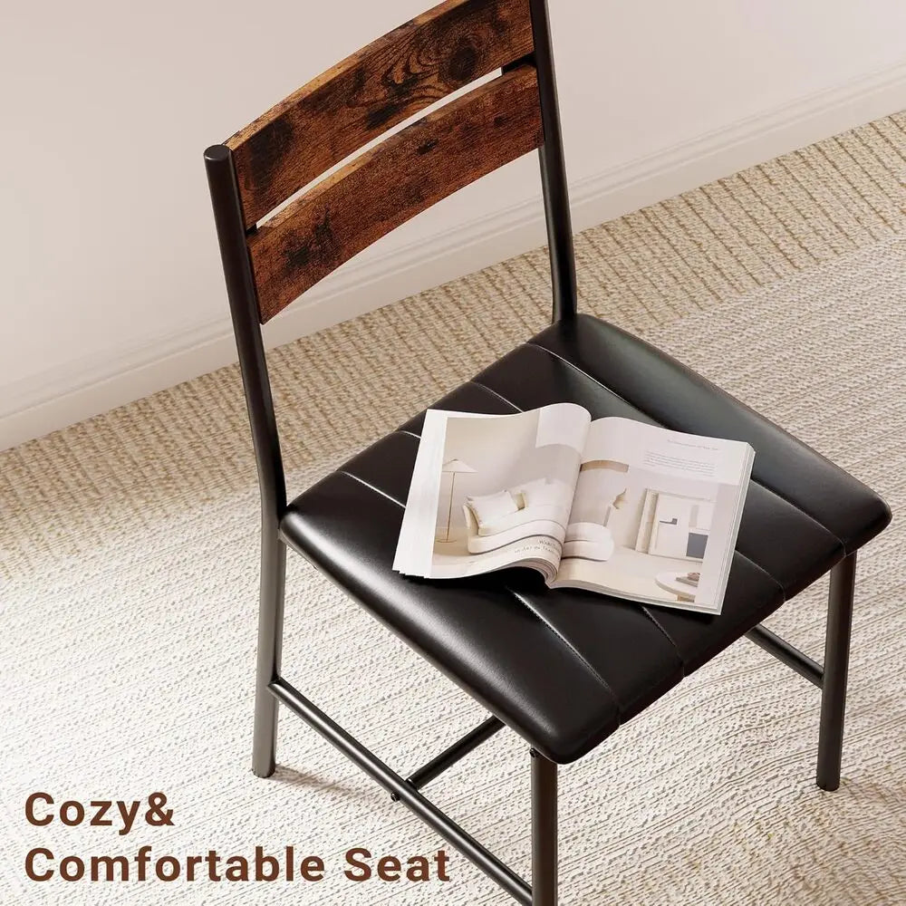 IRONCK Dining Table Set for 4 – Rustic Brown Wood Kitchen Table with Upholstered Chairs