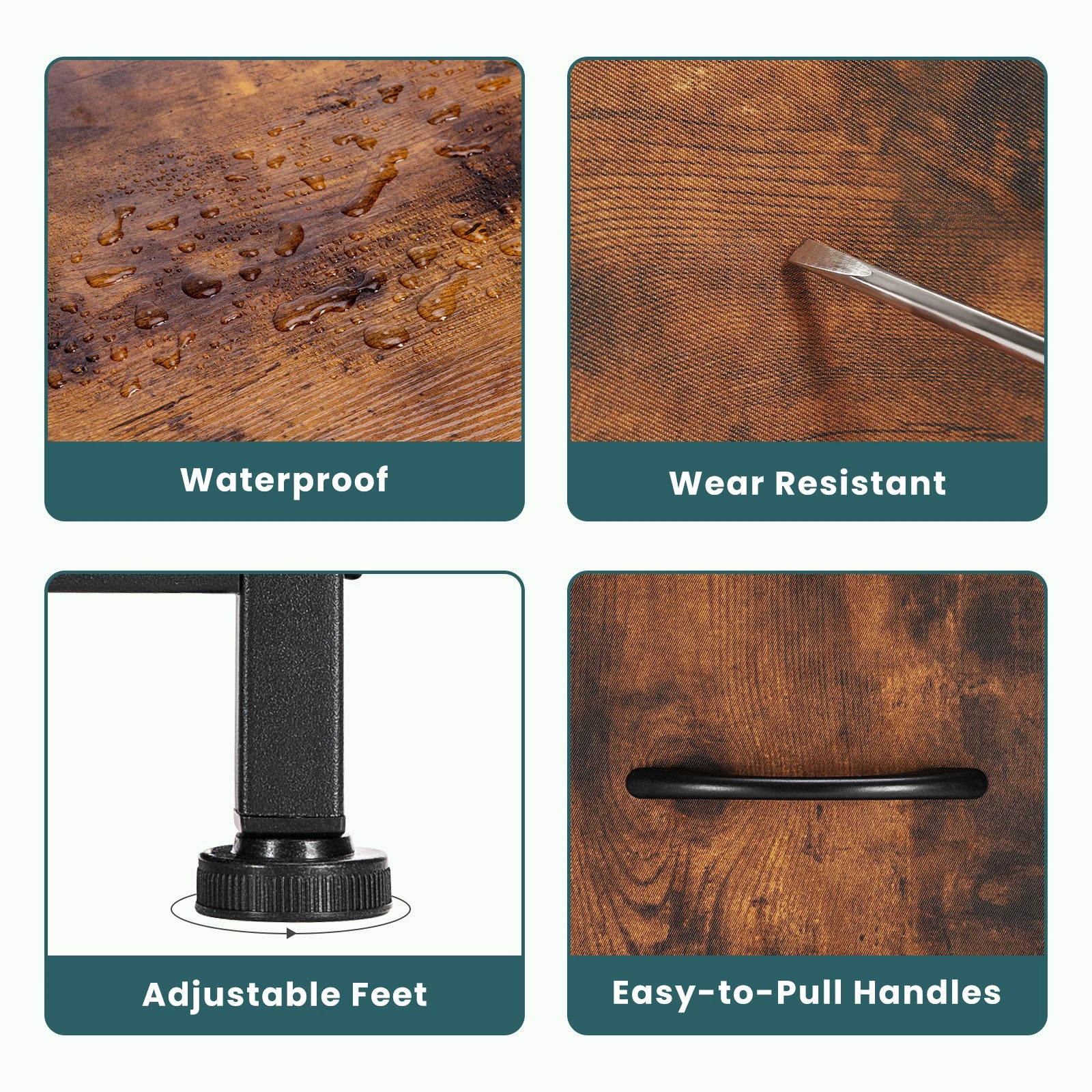 🪵 Modern Rustic Style: Combines industrial metal frame with wood finish and soft fabric drawers for a warm, contemporary look.