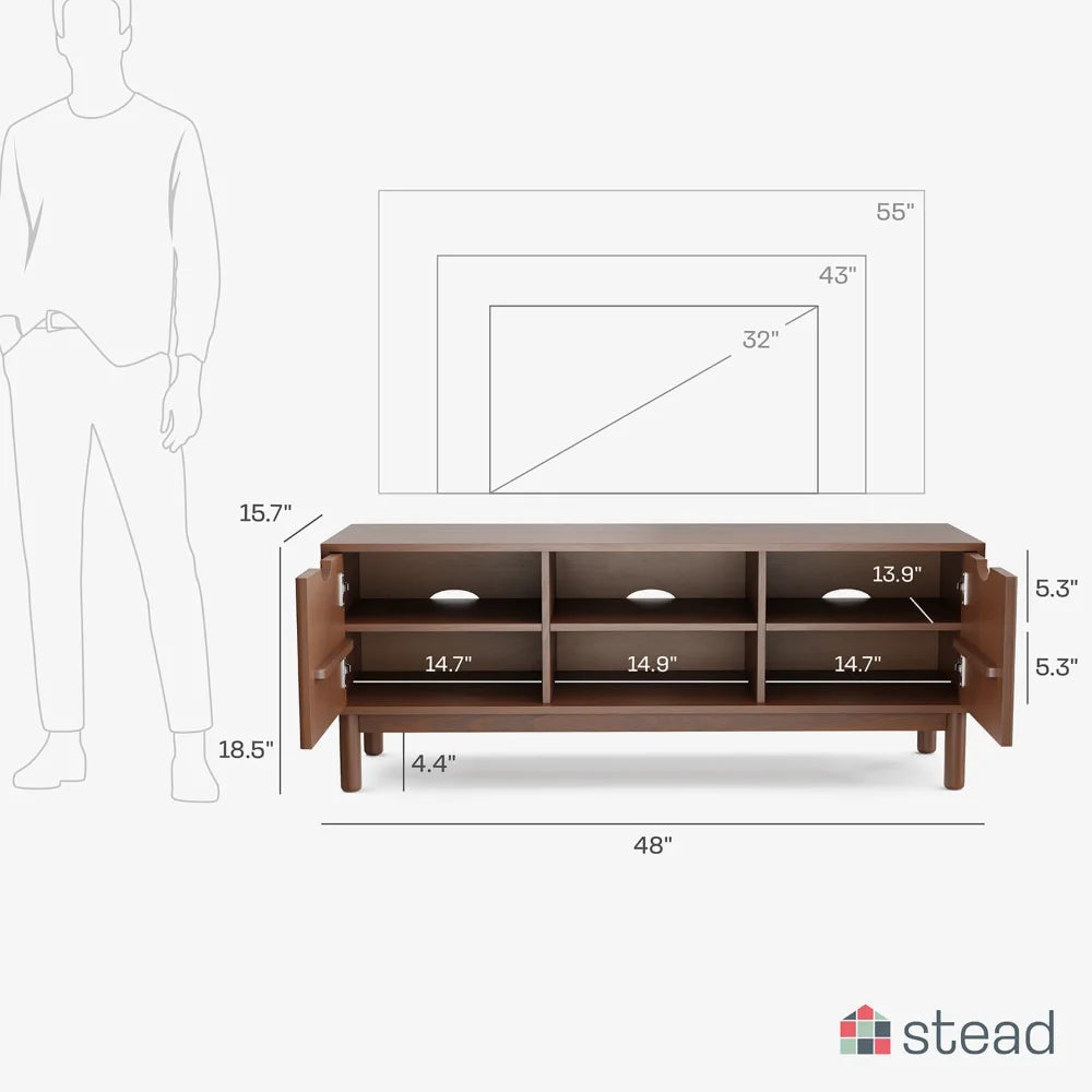 Spacious 48” Size: The 48-inch length offers ample space to accommodate most flat-screen TVs up to 50”, providing a sleek platform for your television.