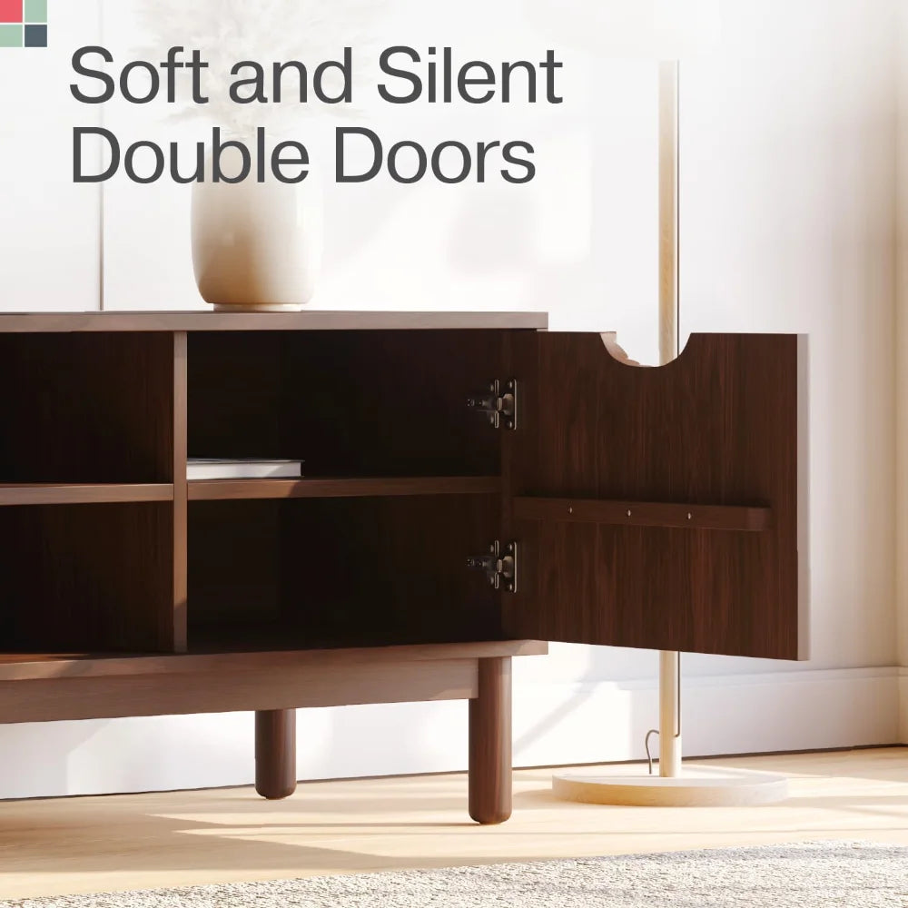 Sleek Mid-Century Design: A stylish and modern TV stand that blends mid-century aesthetics with a contemporary touch, perfect for adding sophistication to any living room or entertainment area.